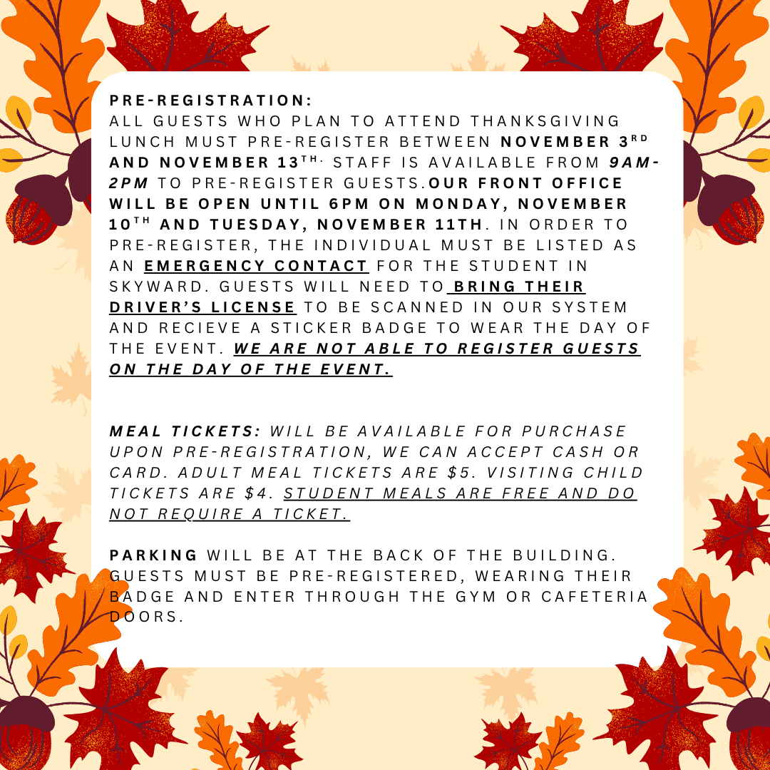 Monday, November 24th-28th-THANKSGIVING BREAK!