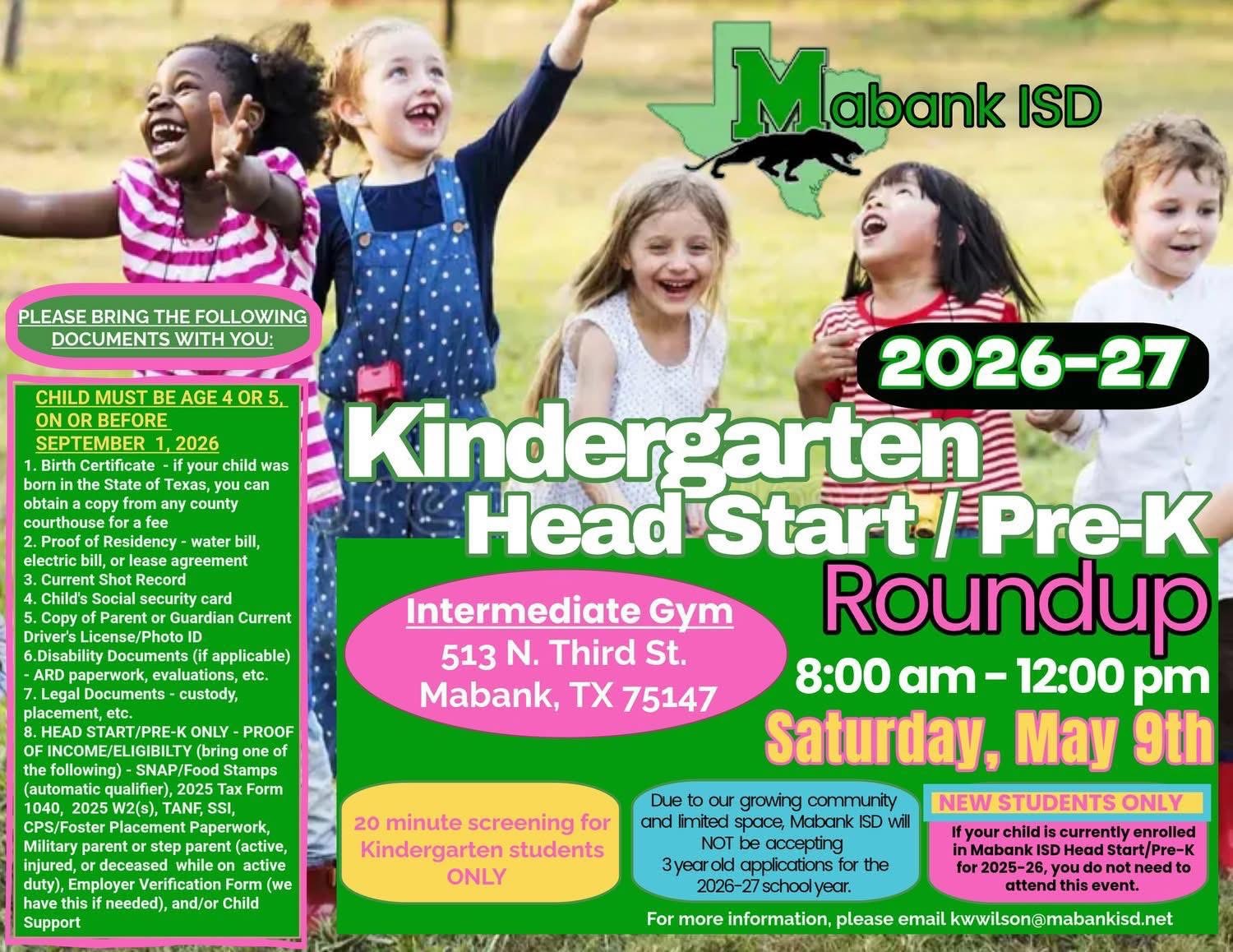 Saturday, May 9th-Kindergarten Round-Up 8:00-12:00 MIS