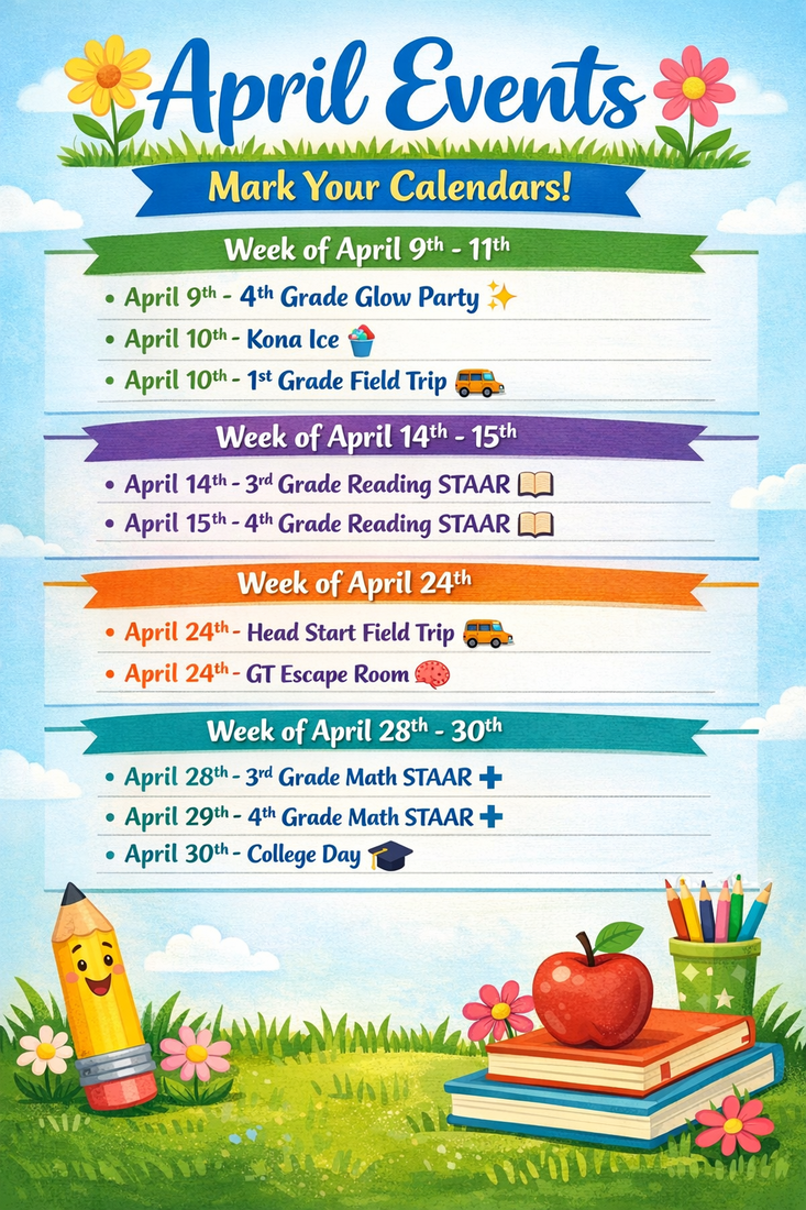 Saturday, April 18th-Saturday School (for attendance) and STAAR MATH CAMP!