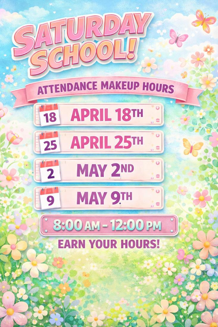 Saturday, April 25th-Saturday School (for attendance)